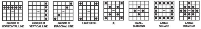 3. IIf on any of CARDS 5 through 16, you match all numbers in a complete horizontal, vertical or diagonal line; or an X; or four corners on CARDS 5 through 8 and CARDS 13 through 16 only; or a SMALL DIAMOND pattern on CARDS 9 through 12 only; or a LARGE SQUARE pattern on CARDS 9through 12 only; or a LARGE DIAMOND pattern on CARDS 13 through 16 only, you win the corresponding prize in the prize legend on the side of that CARD.