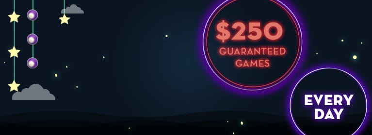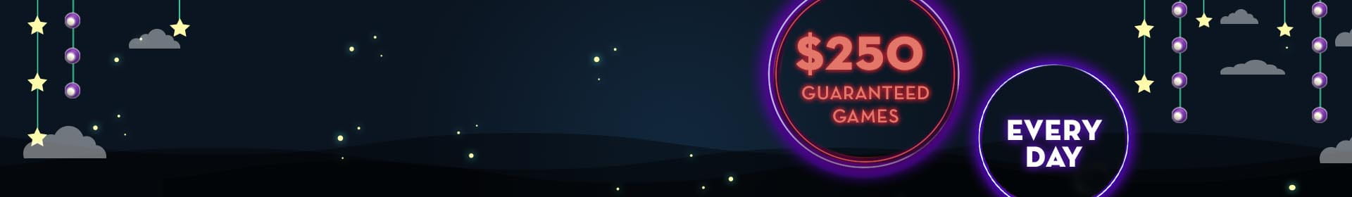 Starting at 9pm PT/11pm CT every night in the Suite 75 room, the first game of the hour will offer a $250 Guaranteed game followed by $75 Guaranteed games for the rest of the hour!