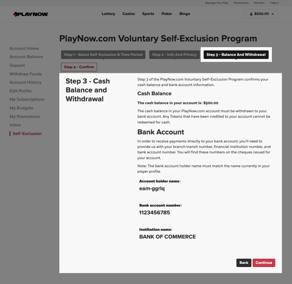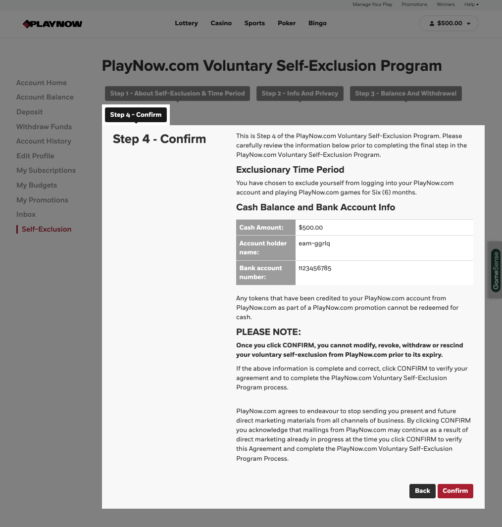 If you choose to be excluded from PlayNow, Manitoba Liquor & Lotteries will cancel your Player Account and pay out any unredeemed PlayerCash once you have completed the online form. Any promotional funds that have been credited to your account can no longer be redeemed.